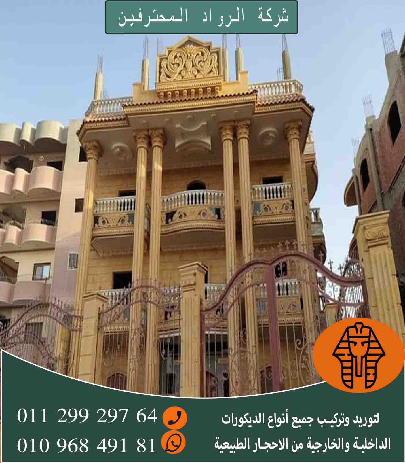 كما نقوم بعمل جميع أنواع الأحجار الطبيعية والاصطناعية وشركة تشطيبات لواجهات الفيلات والمنازل والعمارات.